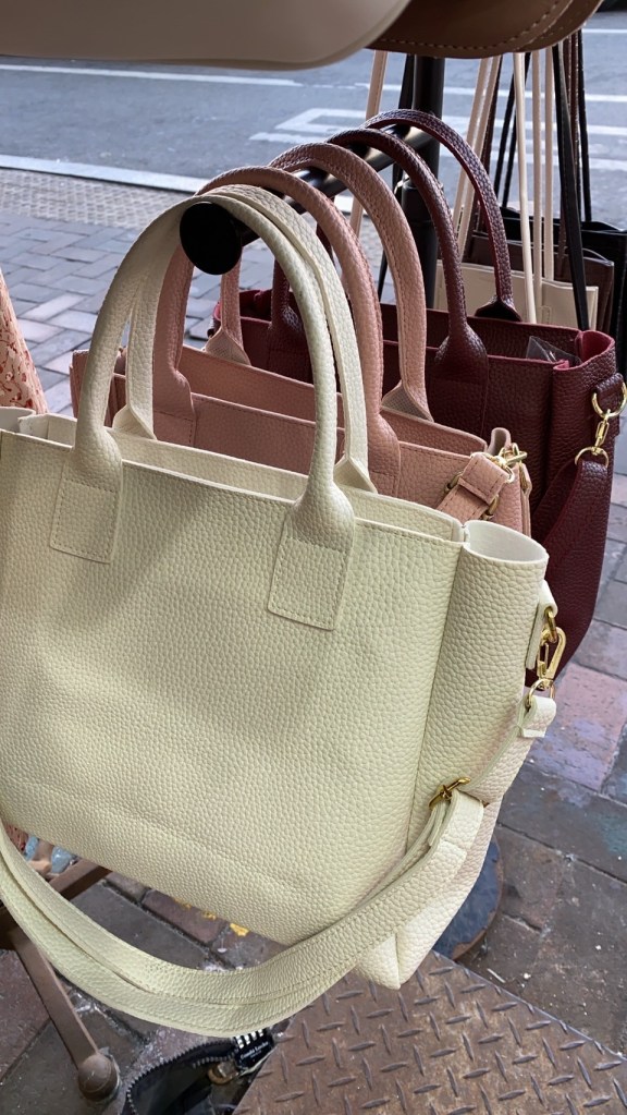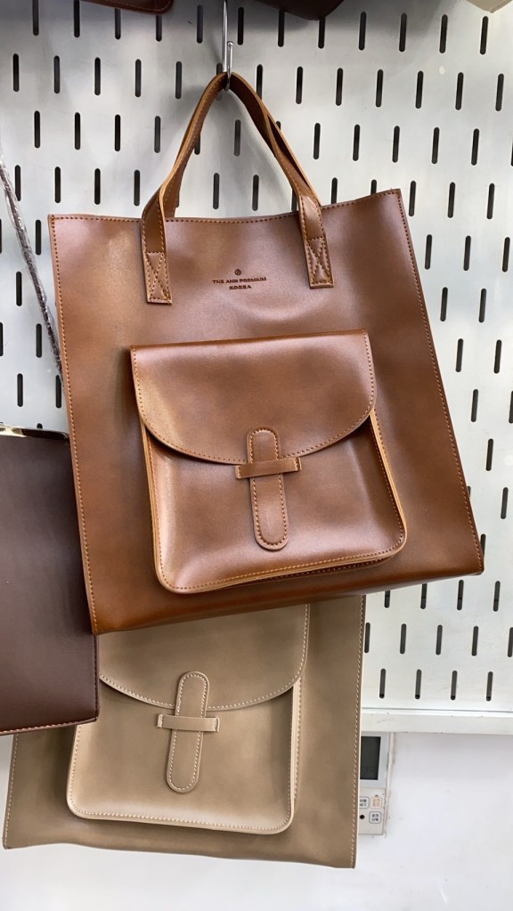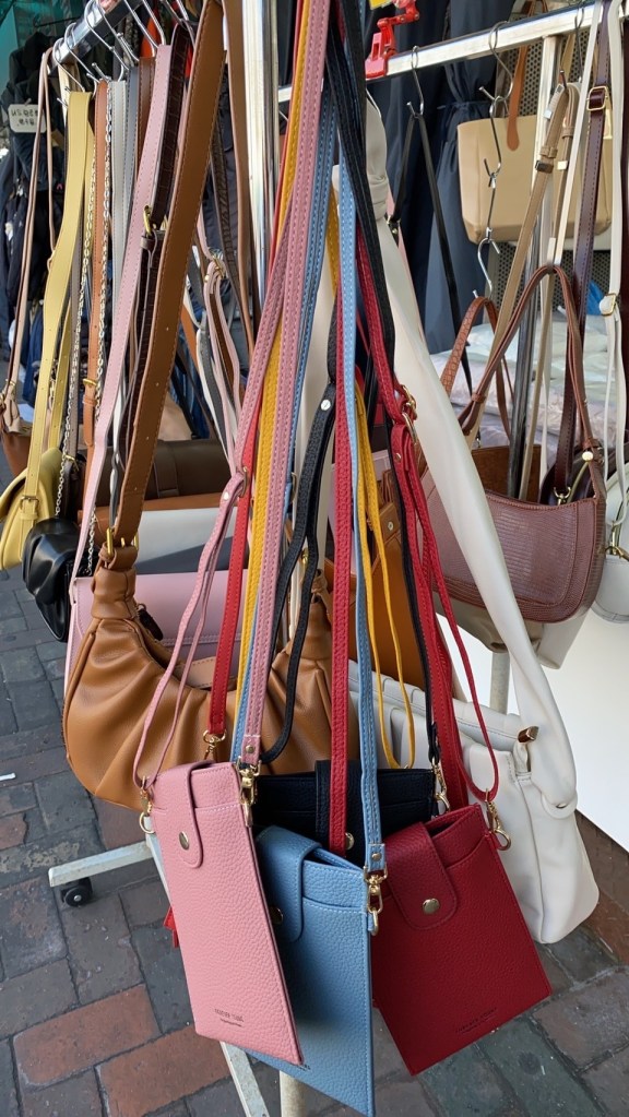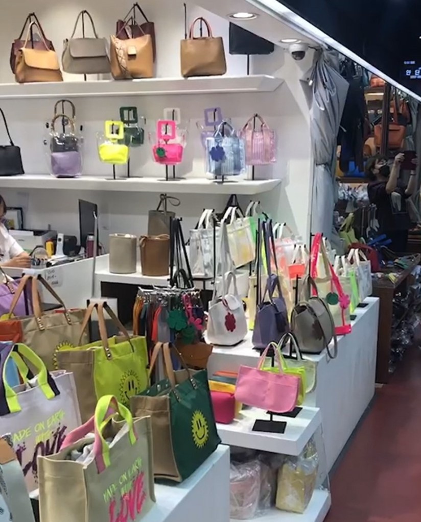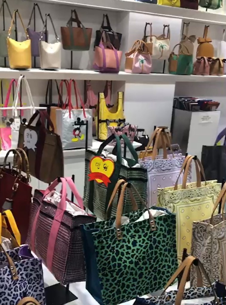 韓国市場には、下の写真のようなさまざまなジャンルのバッグが数多くございます。
