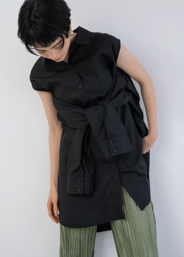 袖を前で結んで着るアレンジもできます。