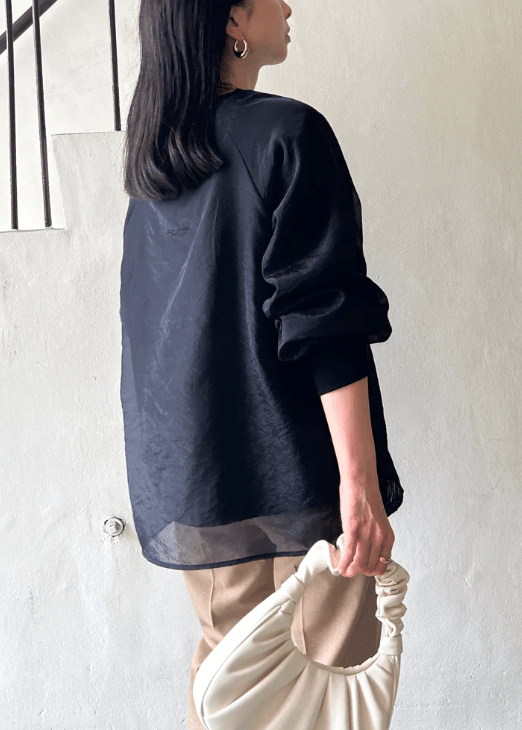 カジュアルになりすぎずキレイ感もでるシアートップスです。