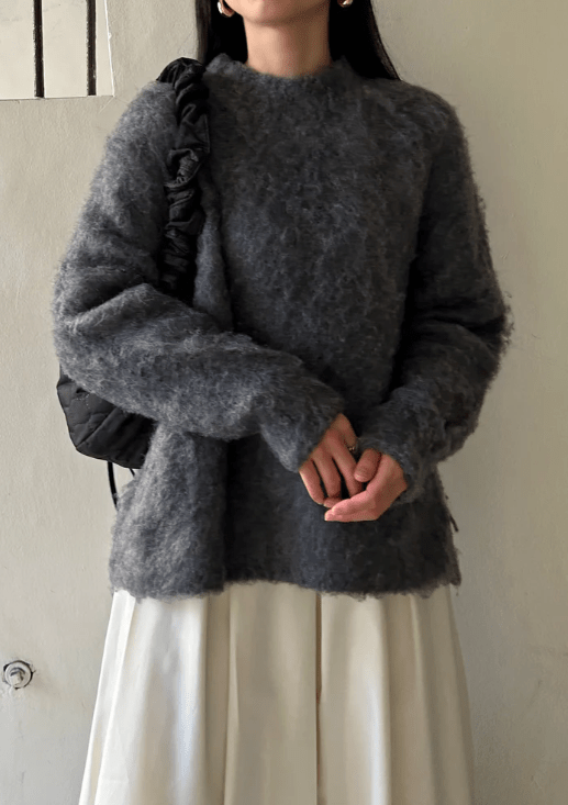 ボリュームがあり、暖かみがあるデザインのセーター。なんとこう見えて重さが300gとかなり軽量なんです。