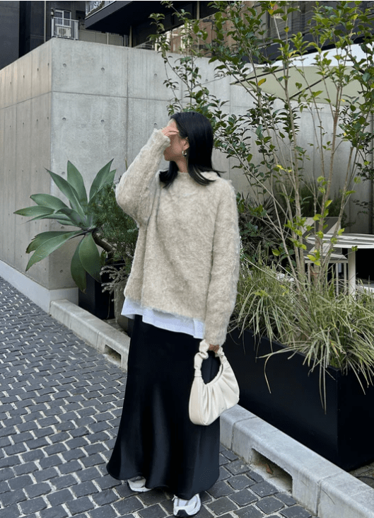 写真のグレーカラーニットと、白スカートの組み合わせが最強に可愛いと思いました!