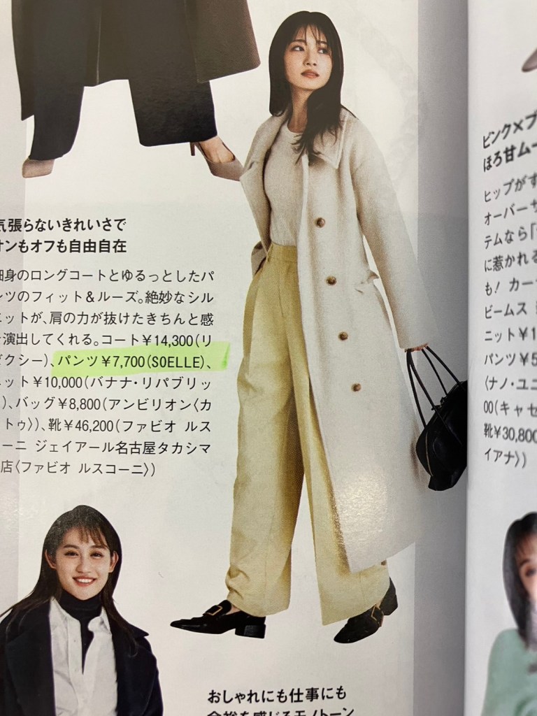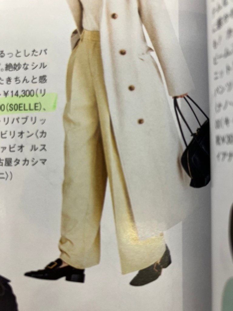 今回は、P57に 「SOELLE」のBASIC STRAIGHT PANTSが掲載されているのを発見できました!