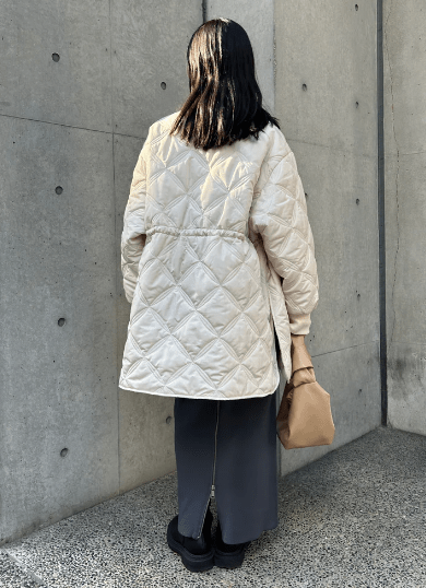 3つめは、軽くさらっと羽織れて可愛いDRAWSTRING QUILTING COATです!