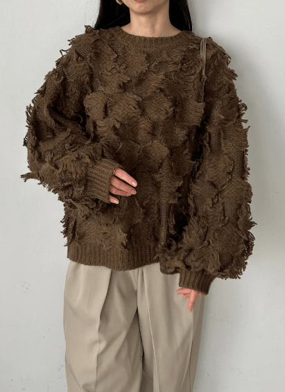 まずは、1枚でコーデが決まる主役級ニット FRINGE KNIT TOPSです!