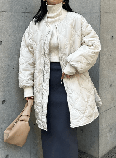 ここ何年かトレンドで、定番になりつつあるキルティングコートですが、