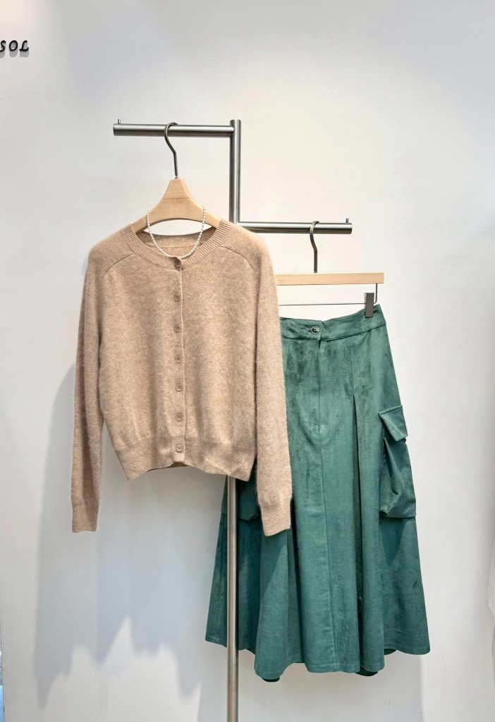大きなサイドポケットが魅力的なスカートで、シンプルさも兼ね備えているので着回し抜群です