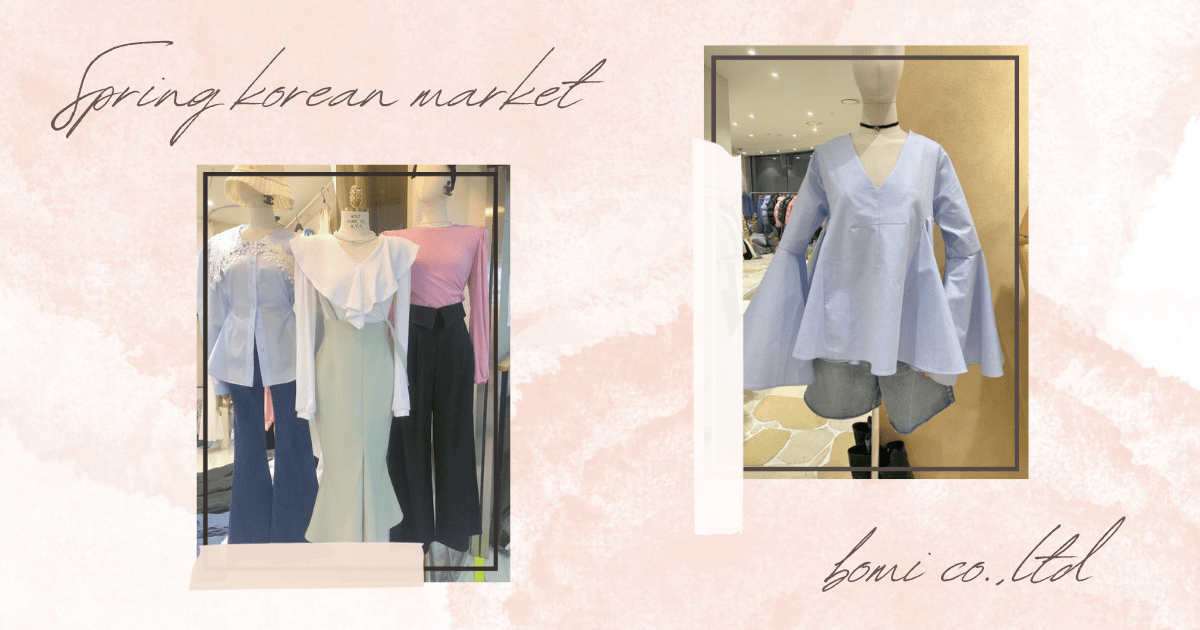 こんにちは、BOMIです。 いつもブログをご覧いただきありがとうございます。 まだまだ寒~い日が続きそうですが 今回は一足先に、ソウルの市場の春物新商品の情報をお届けいたします! まずは、、春といえば花柄! ワンピースな続きを読む “春が待ち遠しい!韓国の最新春服情報”